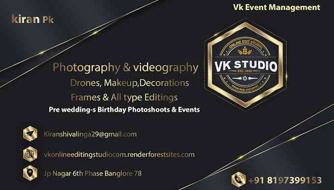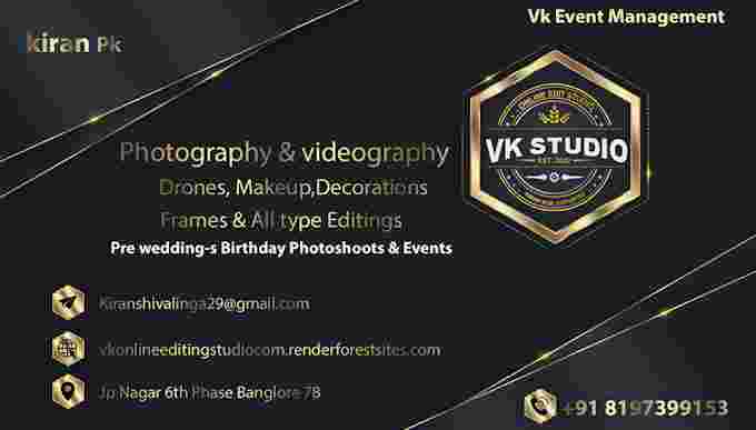 "kiran kumar Runs this studio photography and videography,Drones and Decoration & Mekeup all Services Available"