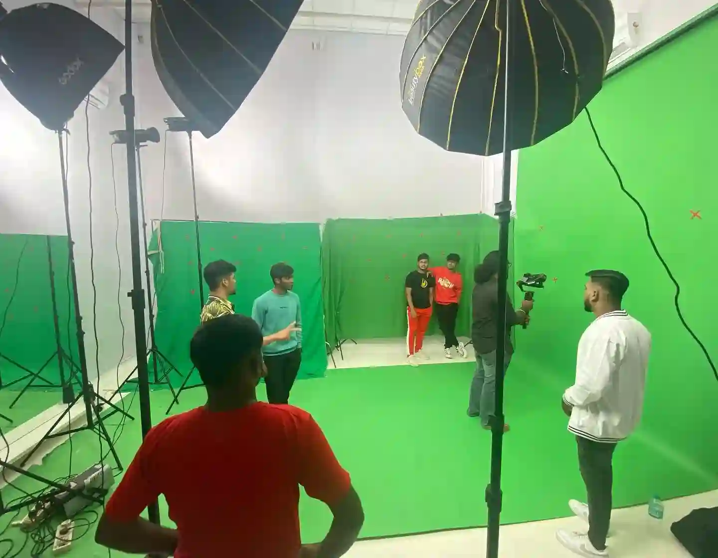WHITE & GREEN MATTE STUDIO Chennai - Shooting space floor, Photoshoot, Editing, Video & Audio Studio, Mute Light Studio is a state-of-the-art shooting floor and video editing + recording studio located in Chennai, Tamil Nadu. It is the first mezzanine shooting floor in Economy at Chennai, and it offers a variety of features and services to meet the needs of filmmakers, photographers, and videographers. We offer a variety of packages to suit different budgets and needs. The video editing and recording studio is equipped with high-end computers and software. It can accommodate multiple editors working on different projects simultaneously.