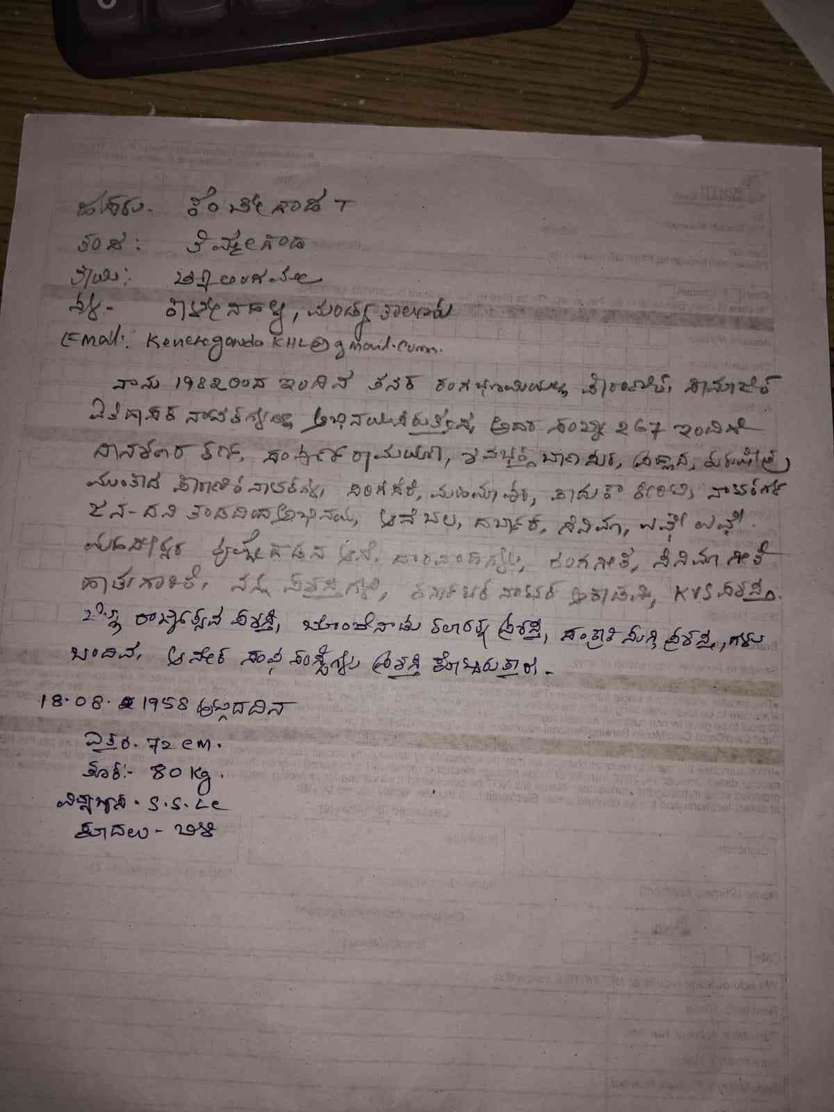 Full Name : Kenchegowda T
